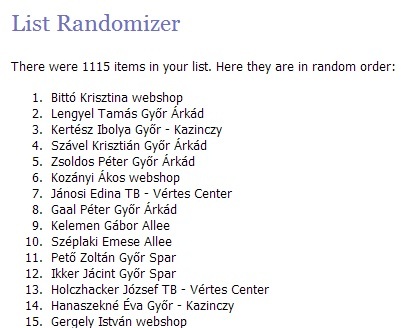 A sorsolásban azon vásárlóink vettek részt, akik december 6 és 24 között legalább 20.000 Ft értékben vásároltak valamelyik üzletünkben, és kitöltötték a regisztrációs lapot. Illetve azok, akik webáruházunkban vásároltak 20.000 Ft-ot meghaladó értékben.
