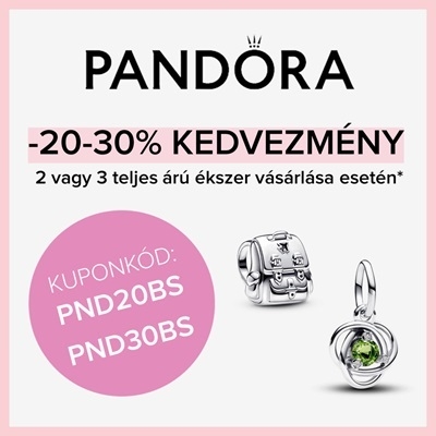 - 3 db teljes árú Pandora ékszer egyidejű vásárlása esetén pedig 30% kedvezményt mindhárom termék árából a PND30BS kuponkód érvényesítésével a kosároldalon.*