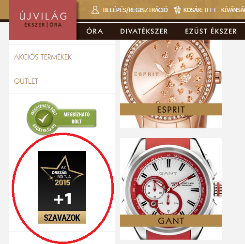Amennyiben vásárlása alkalmával elégedett szolgáltatásunkkal, tetszik a vállalkozásunk vevőközpontú szemlélete, a kiszolgálás színvonala, akkor nyomjon egy kattintást a weboldalunkon található szavazógombra, vagy az alábbi linkre:http://www.orszagboltja.hu/szavazas/2519