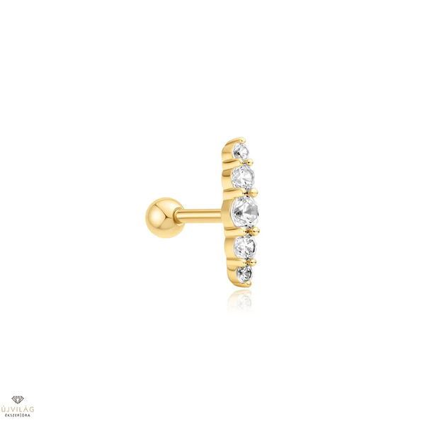 Tegye teljessé fülékszereit a bar barbell fülbevalónkkal, amelynek középpontjában egy csillogó kubikus cirkónia található, amelyet négy különböző méretű kő vesz körül. Úgy tervezték, hogy könnyedén kombinálható más ékszerekkel, és kifinomult dimenziót ad a gondosan összeállított fülékszer-kollekciójának.