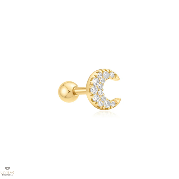 Fedezze fel a csillagok varázsát ezzel a félhold alakú fülbevalóval, amelynek kecses íve pavé-beültetett cirkóniákkal díszített, így folyamatos csillogást biztosít. A csillogó hold alakú sziluett ötvözi a csillagok romantikáját a modern stílussal – tökéletes önálló ékszerként vagy más ékszerekkel kombinálva, hogy holdfényes fülbevaló-szettet alkosson.