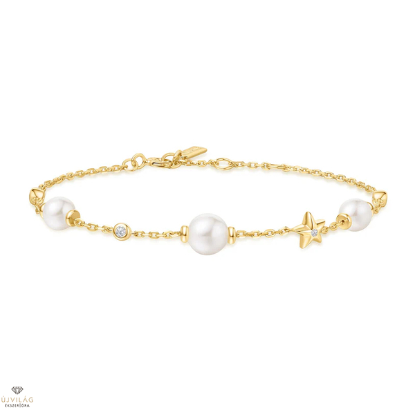 A Miss Dainty azoknak a nőknek készült, akik szeretik az eleganciát egy kis szeszélyességgel. A gyönyörű és romantikus dizájn, valamint a kiváló kivitelezés garantálja, hogy Ön is sugározza a varázsát. Ez a karkötő gyöngyökkel és kubikus cirkóniákkal díszített, csillag alakú akcentussal, amely megtöri a szabályos elrendezést, és megtestesíti a kecsességet és a finom kifinomultságot. Tökéletes mind szakmai alkalmakra, mind mindennapi viseletre.