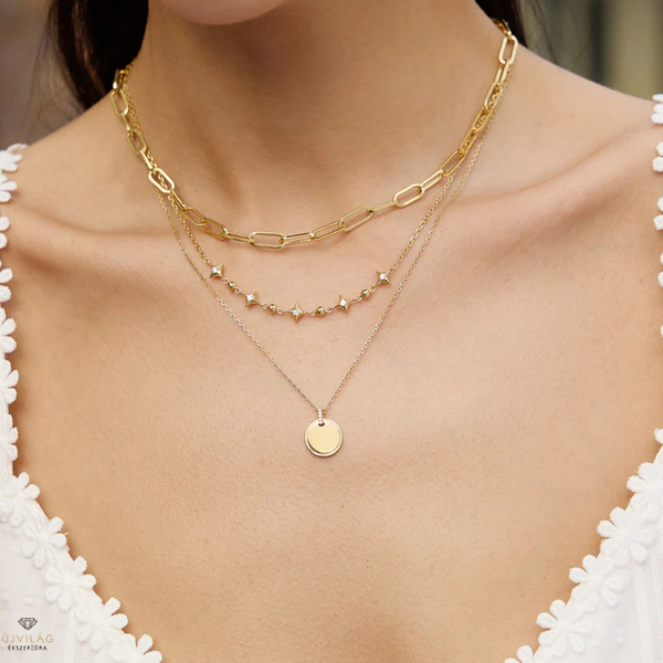 A kifinomult és végtelenül kifinomult Vogue Maven azok számára készült, akik a visszafogott luxus hívei. Legyen szó üzleti találkozóról vagy különleges eseményről, ez a megjelenés időtlen eleganciájával garantálja, hogy maradandó benyomást kelt. Ez a vaskos láncos nyaklánc a merész minimalizmust testesíti meg, és úgy tervezték, hogy egyedül vagy más darabokkal rétegezve is viselhető legyen.