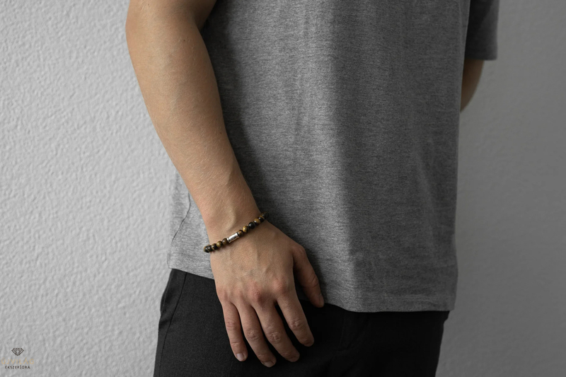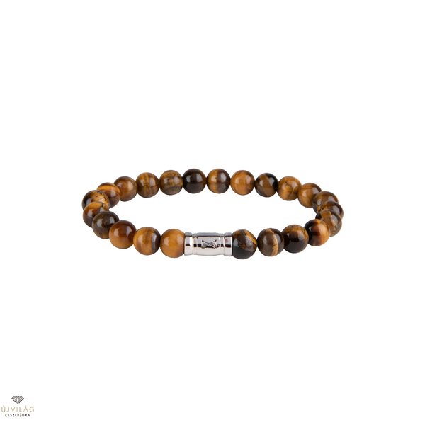 Stílusos és minimalista. Ez a karkötő kiváló minőségű drágakövekből készült, amelyek tökéletesen illeszkednek mind formális, mind alkalmi ruhákhoz. 8 mm-es sima tigris szem gyöngyökből és finom 925-ös ezüst zárból készült. Az erős rugalmas zsinór tartja össze a karkötőt és biztosítja a kényelmes illeszkedést. A tigris szem gyöngyöt gyönyörű arany és barna színei jellemzik. Kombinálja ezt a karkötőt más Aze ékszerekkel, és adjon stílusos extra hangulatot megjelenésének.