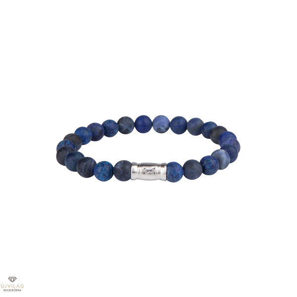 Stílusos és minimalista. Ez a karkötő kiváló minőségű drágakövekből készült, amelyek tökéletesen illeszkednek mind az elegáns, mind a hétköznapi ruhákhoz. 8 mm-es, sima szodalit gyöngyökből és egy finom 925-ös ezüst záróelemmel készült. Az erős, rugalmas zsinór tartja össze a karkötőt, és biztosítja a kényelmes viseletet. A szodalit természetes kőre jellemző a ragyogó kék színe és a kőben végigfutó fehér erezet. Ez a matt kivitel különleges, kissé nyers megjelenést kölcsönöz neki.