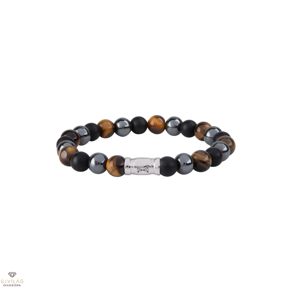 Stílusos és minimalista. Ez a karkötő kiváló minőségű drágakövekből készült, amelyek tökéletesen illeszkednek mind az elegáns, mind a hétköznapi ruhákhoz. 8 mm-es gyöngyökből és egy finom 925-ös ezüst zárból készült. Az erős, rugalmas zsinór tartja össze a karkötőt, és biztosítja a kényelmes viseletet. Kombináld ezt a karkötőt más Aze ékszerekkel, és adj stílusos plusz csavart a megjelenésednek!