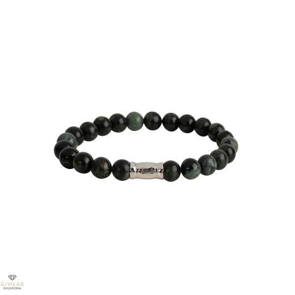 Ez a karkötő kiváló minőségű drágakövekből készült, amelyek tökéletesen illeszkednek mind formális, mind alkalmi ruhákhoz. 8 mm-es klasszikus riolit gyöngyökből készült. Az erős rugalmas zsinór tartja össze a karkötőt és biztosítja a kényelmes illeszkedést. Kombinálja ezt a karkötőt más Aze termékekkel, és adjon stílusos extra hangulatot megjelenésének.