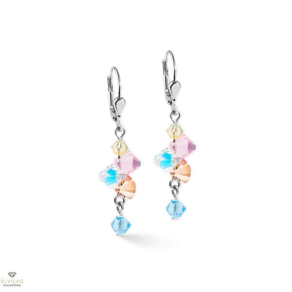 Lágy színek, erős kifejezés - a Dancing Crystals ezüst-pasztell fülbevalók a fénnyel és a mozgással játszanak. A pasztellszínű, rombuszos csiszolású Swarovski-kristályok minden mozdulatnál csillogó színjátékot hoznak létre, ami a fényes rozsdamentes acéllal kombinálva különösen modernnek hat. Tökéletes egyensúly a könnyedség és a kifinomultság között. Méretek: Hossz: 4 cm. Átmérő: 1 cm.