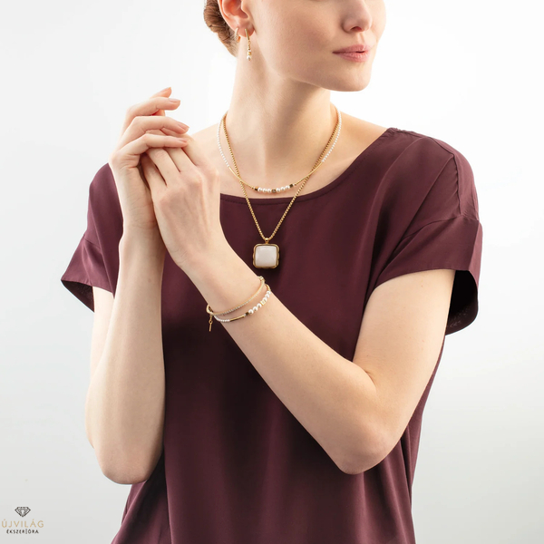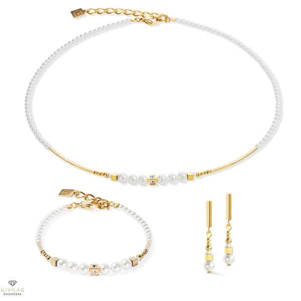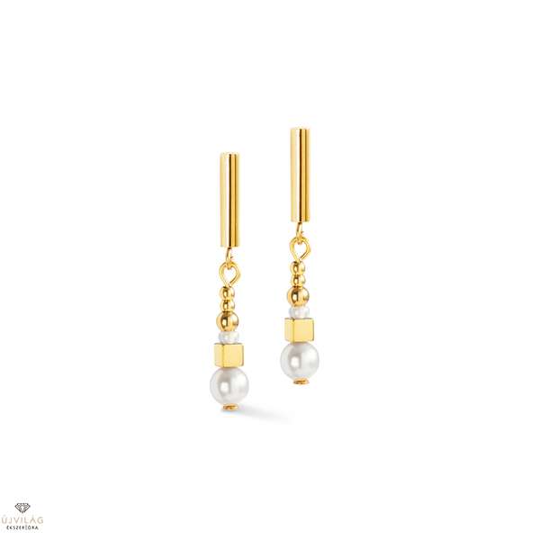 Csillogó elegancia minden pillanatra - a Shimmering Princess Pearls arany és fehér fülbevaló a Swarovski® kristálygyöngyök időtlen szépségére és a finom arany részletekre támaszkodik. Finom csillogásuk kifinomult befejezést eredményez, amely tökéletes különleges alkalmakra vagy diszkrét mindennapi luxusnak. Hossz: 3.3 cm.