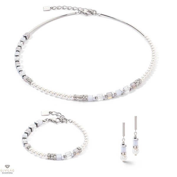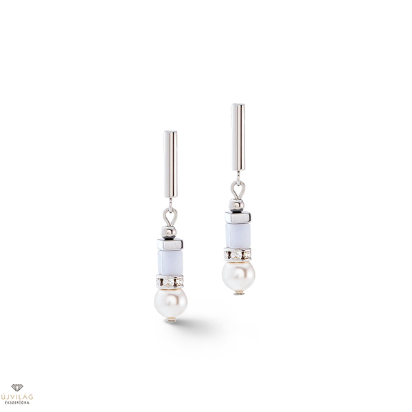 Precious Fusion Offset fülbevaló Ezüst Jégkék: A Precious Fusion Offset fülbevaló ezüst jégkék színben a finom kalcedont csillogó kristálygyöngyökkel kombinálja. Ezek a fülbevalók játékos eleganciát kölcsönöznek az öltözékednek, és tökéletes kiegészítői annak, hogy finom, stílusos vonást adj a megjelenésednek - ideális a mindennapokra és a különleges pillanatokra. Hossz: 3.3 cm