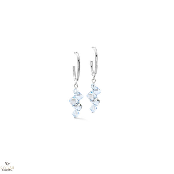 A „Dancing Crystals” ezüst-kristály fülbevalók elegáns karika fülbevalóként készültek, megragadva a kollekció folyékony mozgását. A több Swarovski® kristály szabadon elrendezve látszik, mintha minden mozdulattal finoman táncolna, ragyogó és dinamikus hatást keltve.