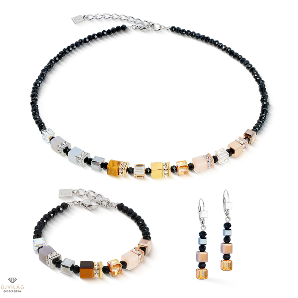 A GeoCUBE® sorozat fülbevalói stílusos hangsúlyt adnak a tiszta, kocka alakú fülbevalóknak. A rózsaszín, az arany és a fekete harmonikus kombinációja nappal és éjszaka egyaránt elegáns hatást kelt. A csillogó kristályokkal és Swarovski® elemekkel díszített fülbevalók a modern elegancia kifejezői. Kézzel készült - tökéletesen illeszkedik az ugyanezen COEUR DE LION kollekcióból származó nyaklánchoz és karkötőhöz.