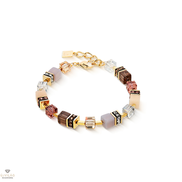 A GeoCUBE® Iconic sorozat karkötője elegáns tisztelgés az ünnepi időszak előtt. A meleg arany- és rózsaszín árnyalatok csillogó elemekkel kombinálva stílusos kiegészítőként szolgálnak a különleges pillanatokhoz. Akár ajándékként, akár ünnepi kiegészítőként – az aranyos pír finom luxusérzetet kölcsönöz minden megjelenésnek. Hossz: 18,5 cm + 3 cm hosszabbító lánc.