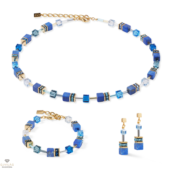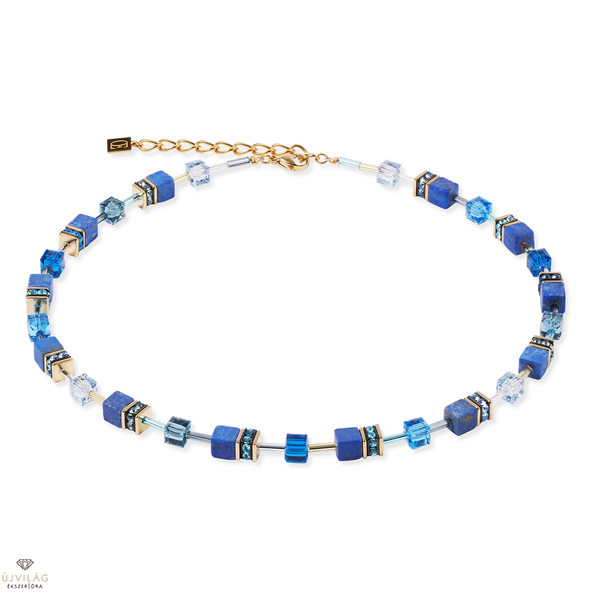 Mélykék és erőteljes - a GeoCUBE® Iconic Precious nyaklánc kékje a kifinomult csillogás érdekében az értékes lapis lazuli és a precízen csiszolt Swarovski® kristálykockák kombinációja. A kiváló minőségű rozsdamentes acélból készült aranyszínű ékszerek kiemelik a luxus dizájnt, és modern, elegáns jelleget kölcsönöznek az ékszernek. Hossz: 42 cm + 6 cm hosszabbító lánc.