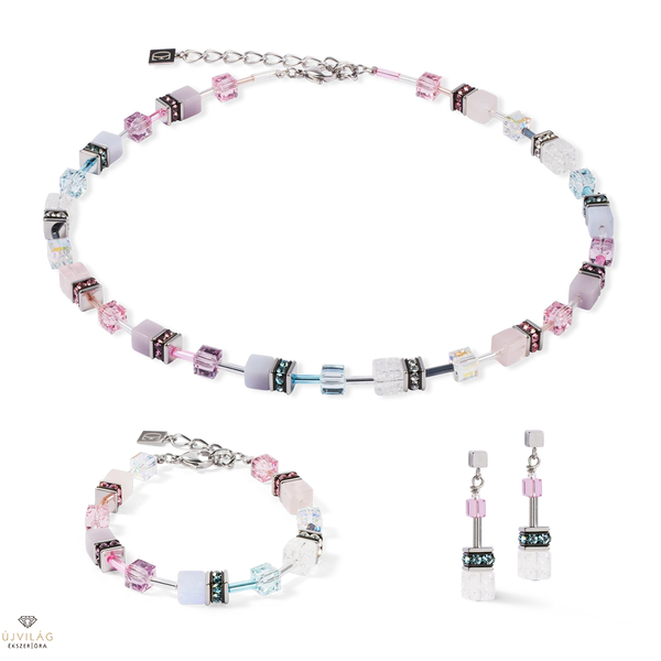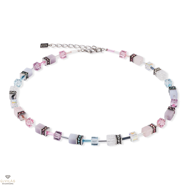 Lágy pasztell árnyalatok lenyűgöző csillogással - a GeoCUBE® Iconic Precious nyaklánc rózsaszín-lila a kalcedon, a hegyikristály és a rózsakvarc finom színeit kombinálja értékes Swarovski® kristálykockákkal. Az ezüstszínű rozsdamentes acélból készült finom részletek modern, mégis nőies megjelenést kölcsönöznek. Méretek: Hossz: 42 cm + 6 cm hosszabbító lánc. Átmérő: 0,6 cm.