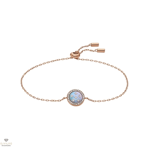 Kifinomult és ragyogó, szürke gyöngyház kollekciónk könnyed eleganciát kölcsönöz. A rózsaszín arany színű rozsdamentes acél karkötő fényes gyöngyház elemekkel és csillogó kristályokkal díszített. A csúszó állíthatóság biztosítja a tökéletes illeszkedést. Emelje ki bármelyik megjelenését ezzel az időtálló darabbal. Hosszúság: 216 mm, szélesség: 10 mm, magasság: 10 mm.