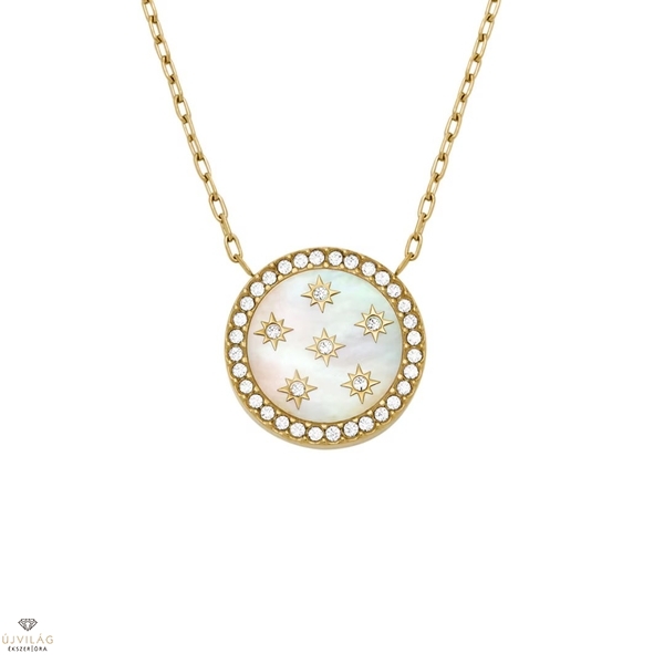 Kifinomult és ragyogó, klasszikus gyöngyház kollekciónk könnyed eleganciát kölcsönöz. Ez az aranyszínű nyaklánc csillogó gyöngyház medállal rendelkezik, amely gyönyörűen megragadja a fényt - tökéletes a mindennapi megjelenés feldobásához. A finom lánc karabineres záródással teszi ezt a sokoldalú kiegészítőt, amelyet az elkövetkező évszakokban is nagy becsben fog tartani. Méretek: Hosszúság: 406.4 mm + 50.8 mm, Szélesség: 13.1 mm, Magasság: 13.1 mm.