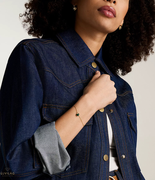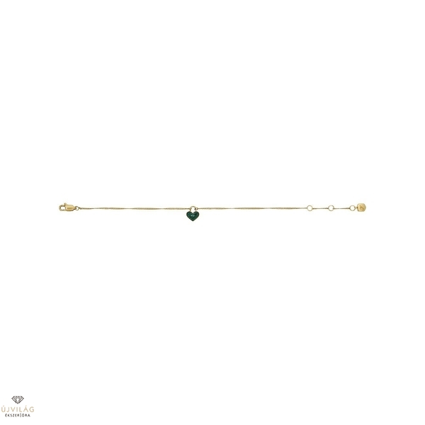 Emelje stílusát egy szinttel magasabbra a lenyűgöző Modern Meadows kollekciónkkal. Egy rekonstruált malachit kő szív lóg egy elegáns, arany színű rozsdamentes acél láncon. Ez a karkötő a természetes szépséget modern éllel ötvözi. Állítsa be a karabinerzárat az Önnek legmegfelelőbb méretre, majd párosítsa kedvenc ruháival egy könnyed színfoltért. Méretek: Hosszúság: 165 mm + 30 mm, Szélesség: 8,6 mm.
