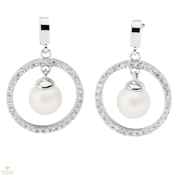 A német családi vállalkozás ezüst ékszerei 925 finomságú ezüstből készülnek, minden kő foglalatban tartott, valamint ródium bevonat garantálja az ezüst tartós fényét – NANA KAY silver trends. Cirkónia kövekkel díszített karika fülbevaló stekkeres zárral, édesvizi tenyésztett gyönggyel, a kör átmérője 15 mm, a gyöngy átmérője 7 mm.