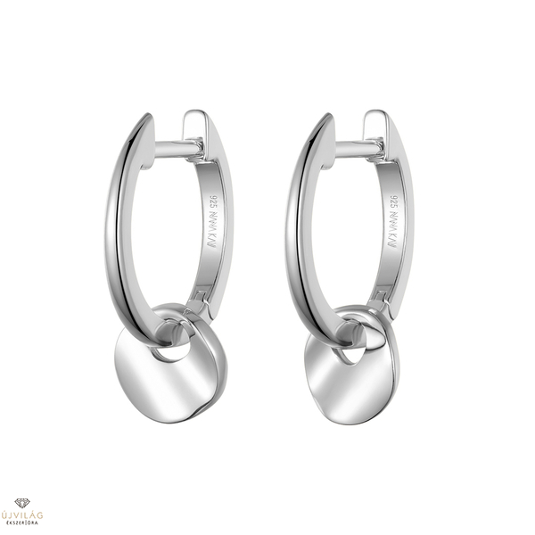 A német családi vállalkozás ezüst ékszerei 925 finomságú ezüstből készülnek, ródium bevonat garantálja az ezüst tartós fényét. Kifinomult megjelenés - ez a NANA KAY silver trends. A karika átmérője 15 mm, szélessége 2 mm, az alsó medál átmérője 8 mm, ez enyhén hajlított síkban, így egyedi "mintában" játszik rajta a fény. Önmagába záródó zárszerkezettel.