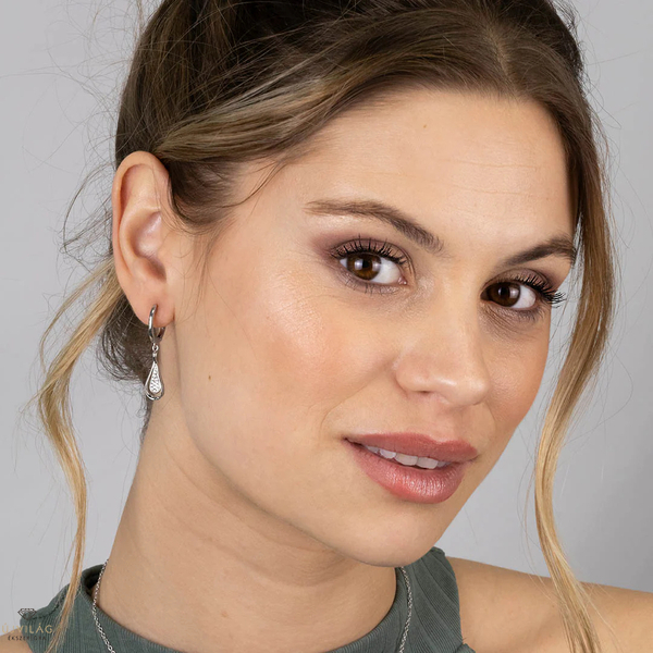 A német családi vállalkozás ezüst ékszerei 925 finomságú ezüstből készülnek, minden követ foglalat tart, ródium bevonat garantálja az ezüst tartós fényét. Kifinomult megjelenés - ez a NANA KAY silver trends. A fülbevaló hossza kb. 30 mm, a medál mérete kb. 18x6 mm. Zárszerkezete stekker. A kő anyaga cirkónia.