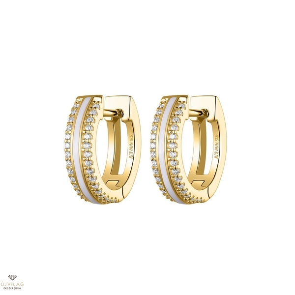 A német családi vállalkozás ezüst ékszerei 925 finomságú ezüstből készülnek, minden követ foglalat tart, ródium bevonat garantálja az ezüst tartós fényét. Kifinomult megjelenés - ez a NANA KAY silver trends. A karika átmérője 15 mm, szélessége 4 mm. Önmagába záródó zárszerkezettel. A kő anyaga cirkónia. A fülbevaló sárga színe 14 karátos aranybevonat, a fehér sáv különleges zománc díszítés.