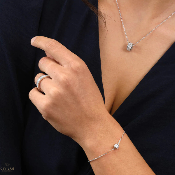 A német családi vállalkozás ezüst ékszerei 925 finomságú ezüstből készülnek, minden követ foglalat tart, ródium bevonat garantálja az ezüst tartós fényét. Kifinomult megjelenés - ez a NANA KAY silver trends. A lánc hosszúsága 19,5 cm, mely a hosszabbító révén kisebb méretre is állítható (16 cm-ig), szélessége 1,5 mm. Zárszerkezete karabiner. A medál henger formájú, átmérője 5 mm, magassága 4 mm. A kő anyaga cirkónia.