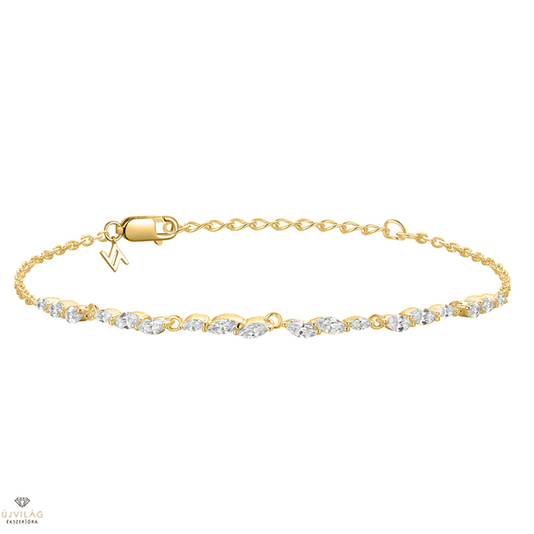 A német családi vállalkozás ezüst ékszerei 925 finomságú ezüstből készülnek, minden követ foglalat tart, ródium bevonat garantálja az ezüst tartós fényét. Kifinomult megjelenés - ez a NANA KAY silver trends. A lánc hosszúsága 19 cm, mely a hosszabbító révén 16 cm-ig rövidebb méretekre is beállítható, szélessége 2 mm. Zárszerkezete karabiner. A kő anyaga cikrónia. A medál mérete 70x3 mm. A karkötő sárga színe 14 karátos aranybevonat.