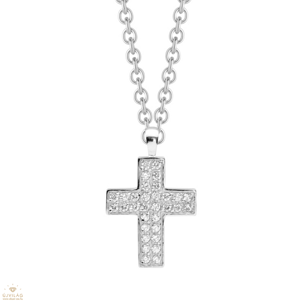 A német családi vállalkozás ezüst ékszerei 925 finomságú ezüstből készülnek, minden követ foglalat tart, ródium bevonat garantálja az ezüst tartós fényét. Kifinomult megjelenés - ez a NANA KAY silver trends. A lánc hosszúsága 45 cm, mely a hosszabbító révén 42 cm-re is állítható, szélessége 1-2 mm. Zárszerkezete karabiner. A kő anyaga cirkónia. A medál magassága 24 mm, vastagsága 3 mm, a kereszt mérete 19x11 mm.