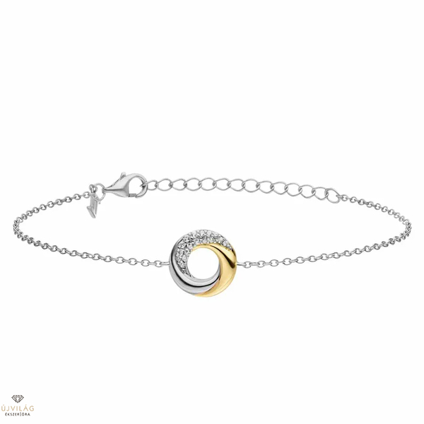 A német családi vállalkozás ezüst ékszerei 925 finomságú ezüstből készülnek, minden követ foglalat tart, ródium bevonat garantálja az ezüst tartós fényét. Kifinomult megjelenés - ez a NANA KAY silver trends. A lánc hosszúsága 19,5 cm, mely a hosszabbító révén kisebb méretre is állítható (16 cm-ig), szélessége 1,5 mm. Zárszerkezete karabiner. A medál körívének mérete 3 mm, átmérője 12 mm. A sárga arany szín 14 karátos aranybevonat.