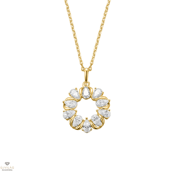 A német családi vállalkozás ezüst ékszerei 925 finomságú ezüstből készülnek, minden követ foglalat tart, ródium bevonat garantálja az ezüst tartós fényét. Kifinomult megjelenés - ez a NANA KAY silver trends. A lánc hosszúsága 48 cm, mely a hosszabbító révén 42 cm-ig rövidebb méretekre is beállítható, szélessége 2 mm. Zárszerkezete karabiner. A kő anyaga cikrónia. A medál átmérője 17 mm, a körív szélessége 5 mm. A nyakék sárga színe 14 karátos aranybevonat.