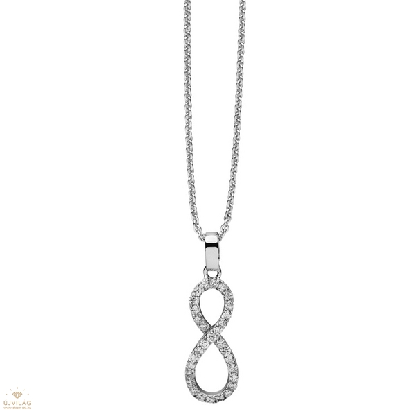 A német családi vállalkozás ezüst ékszerei 925 finomságú ezüstből készülnek, minden követ foglalat tart, ródium bevonat garantálja az ezüst tartós fényét. Kifinomult megjelenés - ez a NANA KAY silver trends. A lánc hosszúsága 45 cm, mely a hosszabbító révén 42 cm-re is állítható, szélessége 1-2 mm. Zárszerkezete karabiner. A kő anyaga cirkónia. A medál mérete 25 mm, a végtelen jel magassága 21 mm, szélessége 6 és 8 mm.