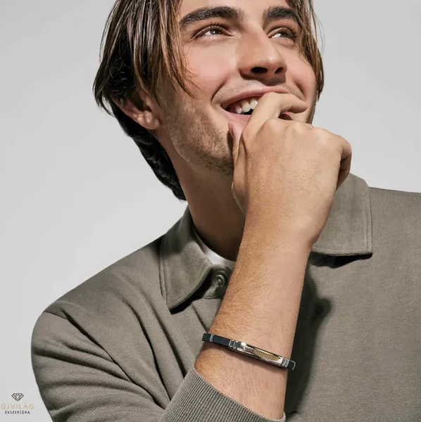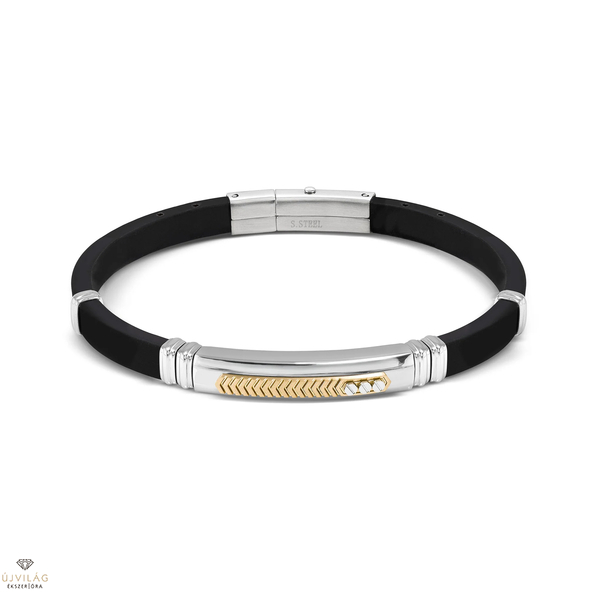 Karkötő gumiból és hipoallergén rozsdamentes acélból, arany PVD részletekkel.