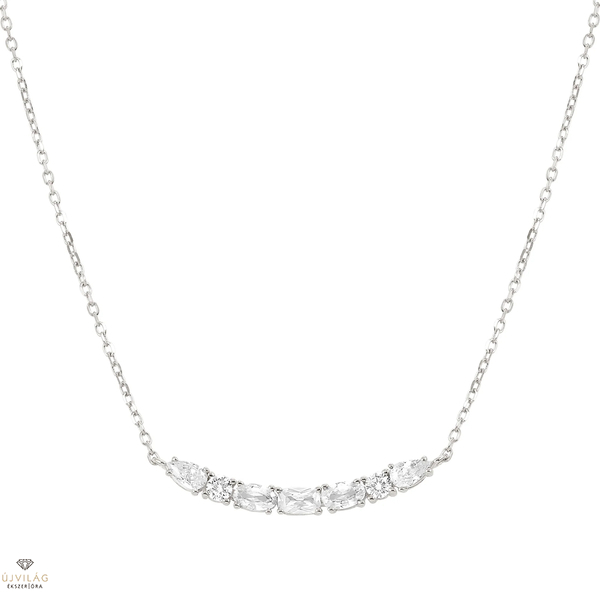 A Colour Wave kollekció egy sterling ezüst nyakláncot kínál, amelyen különböző formájú, csillogó fehér cirkóniák vannak elhelyezve egy rövid rúdon, sterling ezüst láncon.