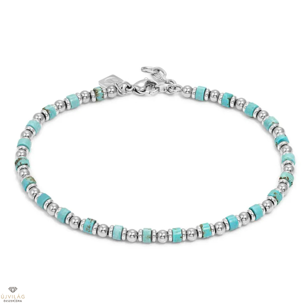 A nyári kiegészítő par excellence, ez a tengeri színekkel díszített bokakarkötő tökéletes módja annak, hogy egész szezonban meghatározd a nyári stílusodat. A rozsdamentes acél ragyogó fényezése sokáig kitart. Az ékszerek szintetikus kövekből készülnek. A természetes kövek zárványokat, csíkokat és erezettséget mutatnak, és színük változhat. Hossza állítható 23-26 cm, szélessége 4 mm.