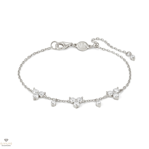 Emelje stílusát a Life Bouquet sterling ezüst karkötővel, amelyen kaszkádszerűen elrendezett fehér cirkóniakövek találhatók egy sterling ezüst láncon. Ez az elegáns darab a Life Bouquet kollekcióból csillogást és melegséget kölcsönöz, tökéletesen kiegészítve bármelyik ruhát kifinomult bájjal és tartós ragyogással.
