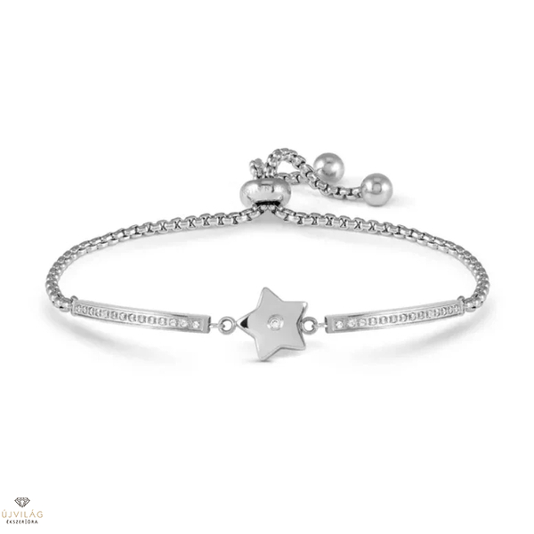 Az ékszerek gyártása során a szakértelem, türelem, kreativitás, az olasz örökség és hagyomány, valamint az összehasonlíthatatlan Made in Italy kézműves kivitelezés a legújabb technológiával és legmodernebb műszaki megoldásokkal párosul. A kiváló alapanyagok, mint az ékszerek alapjául szolgáló legmagasabb minőségű rozsdamentes acél, amely ellenálló az exkluzívrugó mechanizmussal szemben, valamint a 18 karátos arany, 14 karátos rózsaarany, drágakő, féldrágakő és gyémánt kiegészítések megfizethető árral párosulnak, így lehet, hogy a NOMINATION világelső az arany és rozsdamentes acél ékszerek területén. Rozsdamentes acélból készült, állítható karkötő fehér cirkóniákkal és csillag szimbólummal.