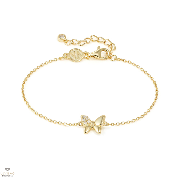 Az ékszerek gyártása során a szakértelem, türelem, kreativitás, az olasz örökség és hagyomány, valamint az összehasonlíthatatlan Made in Italy kézműves kivitelezés a legújabb technológiával és legmodernebb műszaki megoldásokkal párosul. A kiváló alapanyagok, mint az ékszerek alapjául szolgáló legmagasabb minőségű rozsdamentes acél, amely ellenálló az exkluzívrugó mechanizmussal szemben, valamint a 18 karátos arany, 14 karátos rózsaarany, drágakő, féldrágakő és gyémánt kiegészítések megfizethető árral párosulnak, így lehet, hogy a NOMINATION világelső az arany és rozsdamentes acél ékszerek területén. Emelje stílusát a Petit Sparkle karkötővel, amely aranyozott sterling ezüst lánccal és finom pillangó medállal rendelkezik, amelyet ragyogó fehér cirkónia díszít. Ez az elegáns darab finom csillogást kölcsönöz minden ruhának, így tökéletes mindennapi viselethez és különleges alkalmakra egyaránt. Kiváló minőségű sterling ezüstből készült, így tartós ragyogást és szépséget ígér.