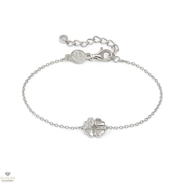 Emelje stílusát a Petit Sparkle karkötővel, amely sterling ezüst lánccal és finom négylevelű lóhere medállal rendelkezik, ragyogó fehér cirkóniával díszítve. Ez az elegáns darab szerencsét és finom csillogást kölcsönöz minden ruhának, így tökéletes mindennapi viseletre és különleges alkalmakra egyaránt. Kiváló minőségű sterling ezüstből készült, tartós ragyogást és tartós szépséget ígér.