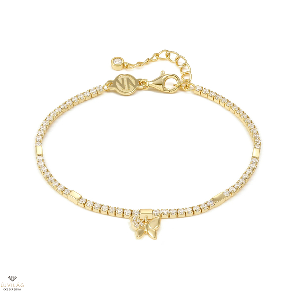 Az ékszerek gyártása során a szakértelem, türelem, kreativitás, az olasz örökség és hagyomány, valamint az összehasonlíthatatlan Made in Italy kézműves kivitelezés a legújabb technológiával és legmodernebb műszaki megoldásokkal párosul. A kiváló alapanyagok, mint az ékszerek alapjául szolgáló legmagasabb minőségű rozsdamentes acél, amely ellenálló az exkluzívrugó mechanizmussal szemben, valamint a 18 karátos arany, 14 karátos rózsaarany, drágakő, féldrágakő és gyémánt kiegészítések megfizethető árral párosulnak, így lehet, hogy a NOMINATION világelső az arany és rozsdamentes acél ékszerek területén. Emelje stílusát a Petit Sparkle tenisz karkötővel, amely ragyogó 18 karátos aranybevonatú ezüstből készült, csillogó fehér cirkóniakövekkel és 18 karátos aranybevonatú ezüst pillangó medállal díszítve. Ez a finom, mégis feltűnő kiegészítő időtálló csillogást kölcsönöz minden ruhának, tökéletes mindennapi viselethez és különleges alkalmakra egyaránt.
