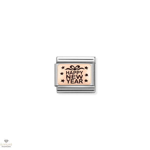 Eredeti összetett láncszem a Nomination Composable Classic karkötőhöz, csillagokkal és újévi üdvözlettel, zománc 9K rózsaarany bevonattal, rozsdamentes acélon. Olaszországban gyártva.