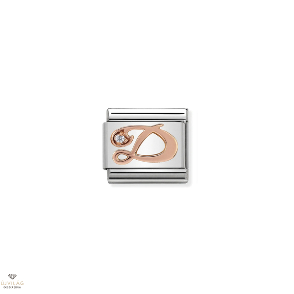 Eredeti összetett láncszem a Nomination Composable Classic karkötőhöz, D betűvel, 9 karátos rózsaaranyból, rozsdamentes acélon. Olaszországban gyártva.