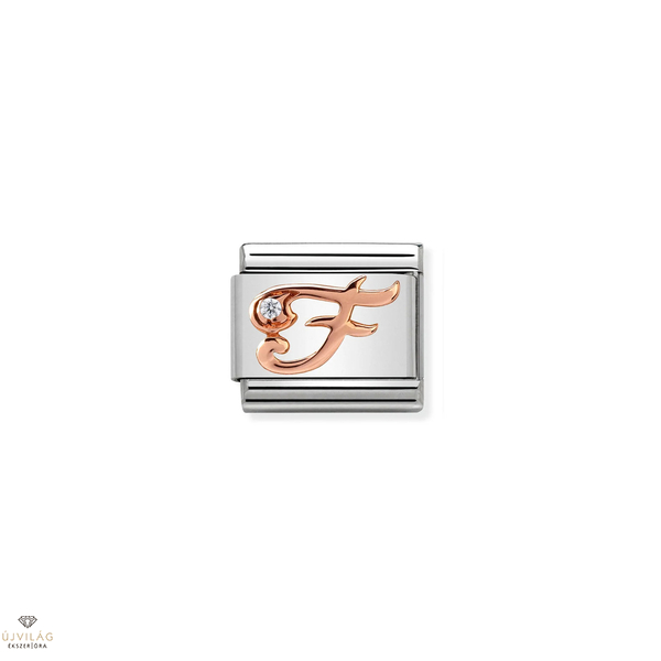 Eredeti összetett láncszem a Nomination Composable Classic karkötőhöz, F betűvel, 9 karátos rózsaaranyból, rozsdamentes acélon. Olaszországban gyártva.