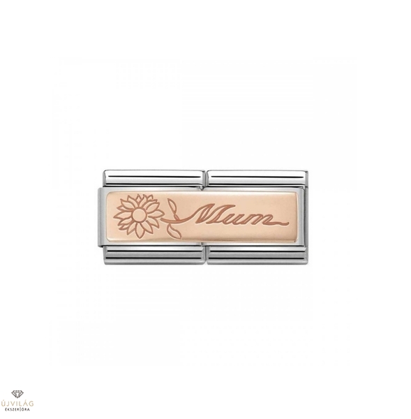 Eredeti Composable Double Link a Nomination Composable Classic karkötőhöz, anyukával és virággal, 9 karátos rózsaaranyból, rozsdamentes acélon. Olaszországban gyártva.