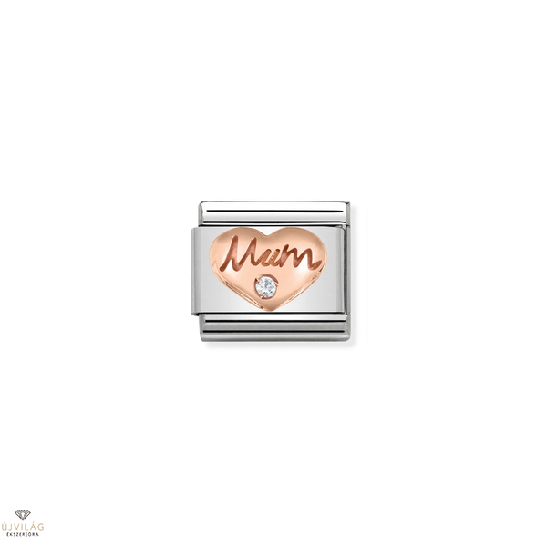 Eredeti összetett láncszem a Nomination Composable Classic karkötőhöz, anya szívvel, 9 karátos rózsaaranyból, kubikus cirkóniával, rozsdamentes acélon. Olaszországban gyártva.