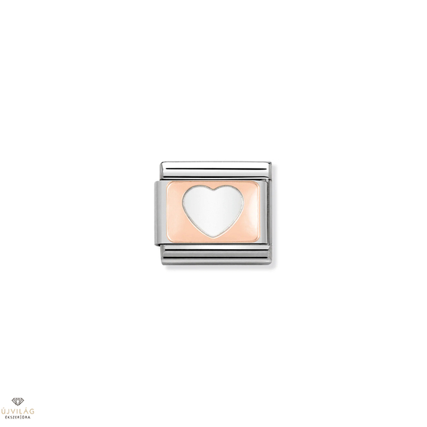 Eredeti összerakható láncszem a Nomination Composable Classic karkötőhöz, 9 karátos rózsaarany szív alakú lemezzel, rozsdamentes acélon. Olaszországban gyártva.
