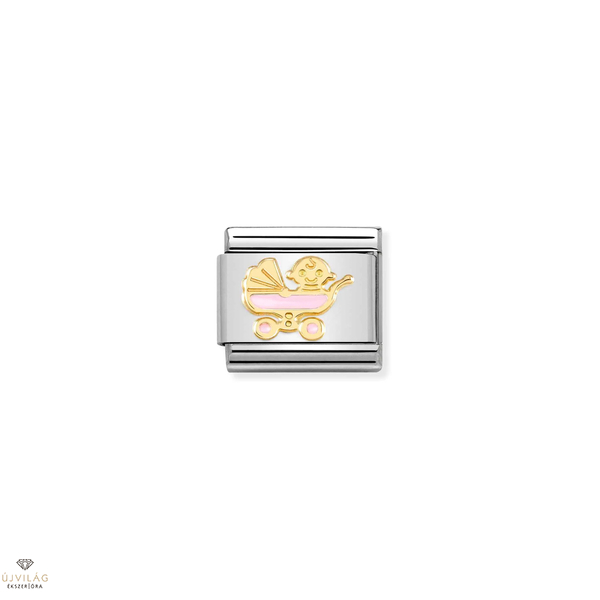 Az ékszerek gyártása során a szakértelem, türelem, kreativitás, az olasz örökség és hagyomány, valamint az összehasonlíthatatlan Made in Italy kézműves kivitelezés a legújabb technológiával és legmodernebb műszaki megoldásokkal párosul. A kiváló alapanyagok, mint az ékszerek alapjául szolgáló legmagasabb minőségű rozsdamentes acél, amely ellenálló az exkluzívrugó mechanizmussal szemben, valamint a 18 karátos arany, 14 karátos rózsaarany, drágakő, féldrágakő és gyémánt kiegészítések megfizethető árral párosulnak, így lehet, hogy a NOMINATION világelső az arany és rozsdamentes acél ékszerek területén. Eredeti összetett láncszem a Nomination Composable Classic karkötőhöz, babakocsival (pram), 18 karátos aranyból és rózsaszín zománccal, rozsdamentes acélon. Olaszországban gyártva.