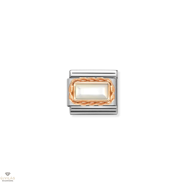 Eredeti összetett láncszem a Nomination Composable Classic karkötőhöz, fehér gyöngyházzal, 9 karátos rózsaaranyból, rozsdamentes acélon. Olaszországban gyártva.
