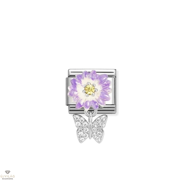 Eredeti összetett lánc a Nomination Composable Classic karkötőhöz, lila zománcból készült lila virággal és sárga cirkóniával, fehér cirkóniával készült pillangó medállal, 925-ös ezüstből.
