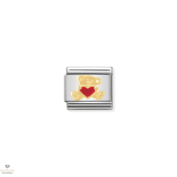 Eredeti összetett láncszem a Nomination Composable Classic karkötőhöz, medvével és szívvel, 18 karátos aranyból és zománcból, rozsdamentes acélon.